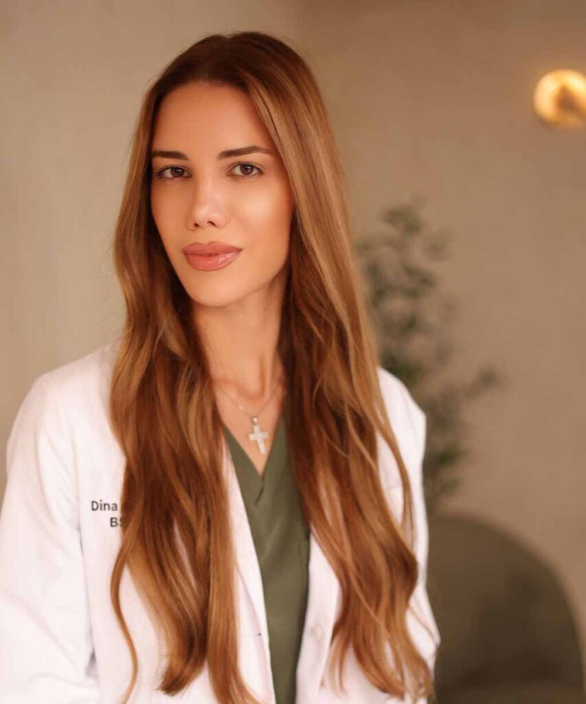Currently completing her Master of Science in Nursing as a Family Nurse Practitioner, Dina is dedicated to continuous growth and evidence-based care. Every treatment reflects her commitment to safety, balance, and enhancing beauty in a way that feels effortless and authentic.